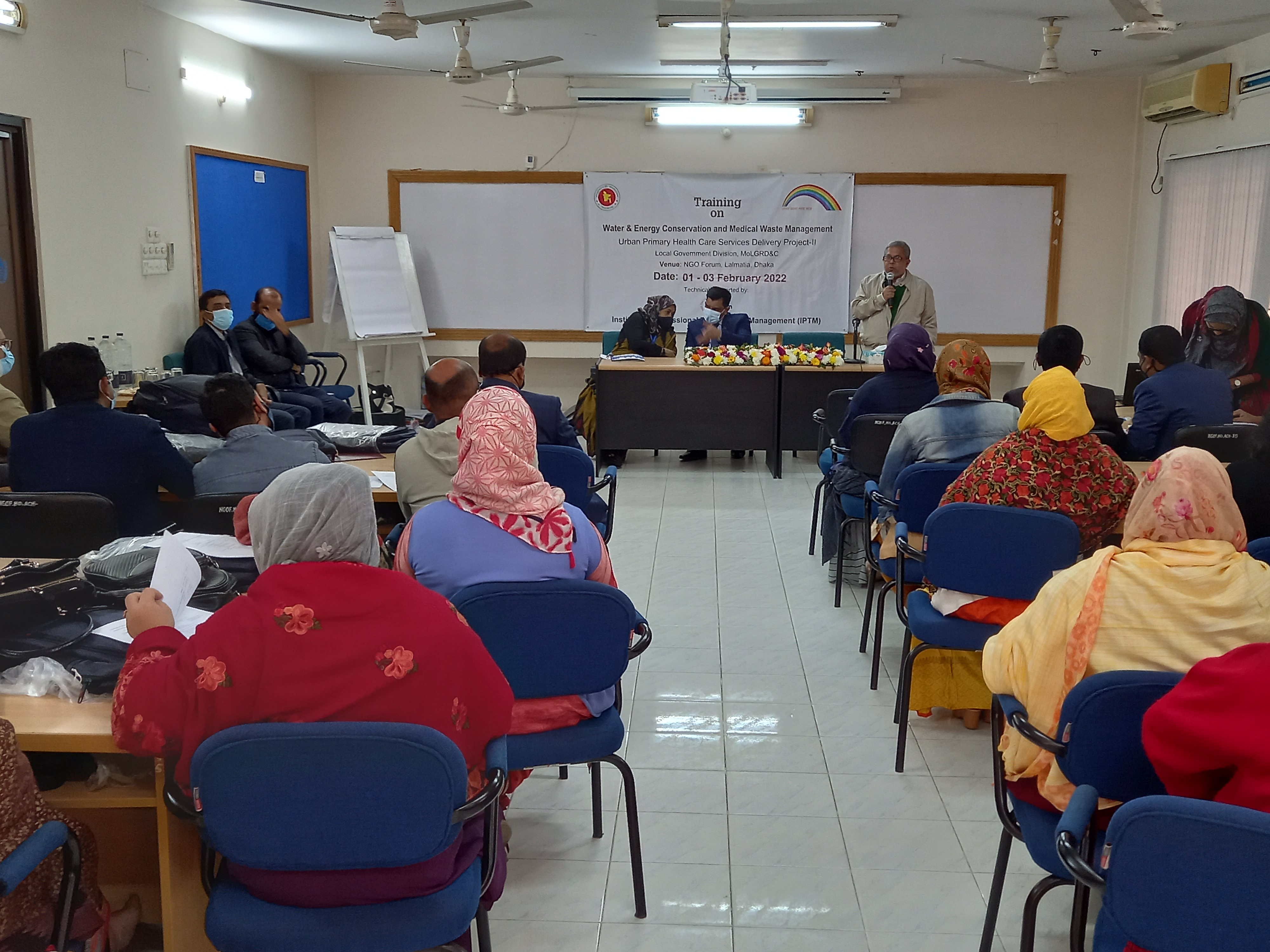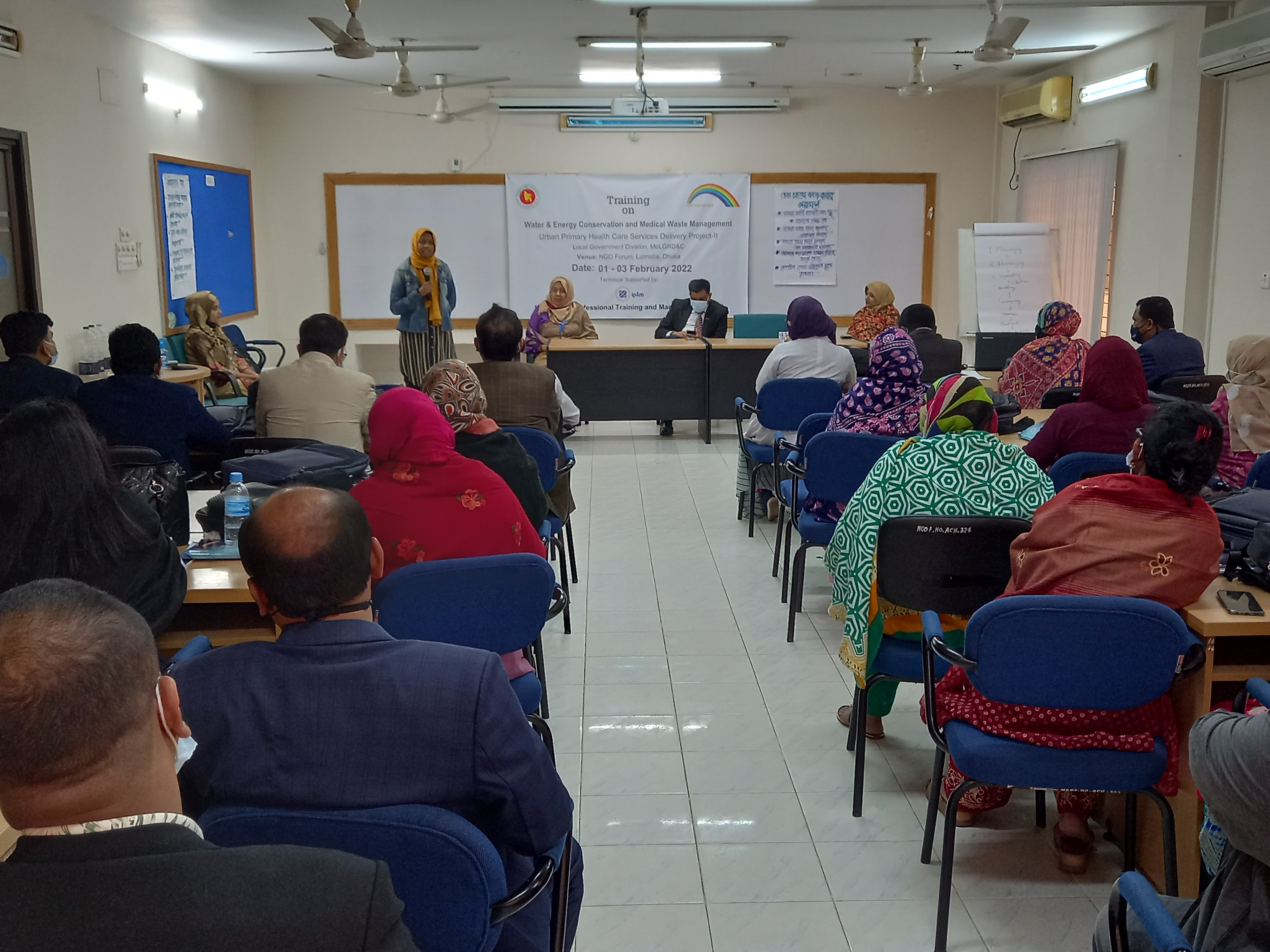 The assignment aims to facilitate participant’s learning about water conservation, energy, and medical waste management systems including hazardous waste to meet national standards in health facilities and raise awareness. The duration of this assignment was 07 (seven) months (December 2021 to June 2022) and the location of this assignment was in Dhaka, Chittagong. Khulna and Rajshahi. IPTM organized a capacity-building program on Water and Energy Conservation and Medical Waste Management that covered 43 PAs in 24 ULBs of Bangladesh and In-Country training for UPHCSDP-AF, LGD. Under this assignment, a total of 280 participants received training in 07 (seven) batches.